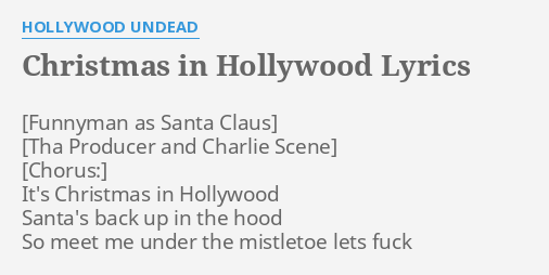 Christmas In Hollywood Lyrics. I blew off a date on Christmas eve. So meet me by the menorah lets get drunk. Its Christmas in Hollywood Santas back up in the hood So meet me under the mistletoe lets fuck Its Hanukkah in Inglewood the dreidels spinning in the hood So meet me by the menorah lets get drunk Ho ho ho Merry Christmas Its Christmas in Hollywood Santas back up in the hood So meet me under the mistletoe lets fuck.